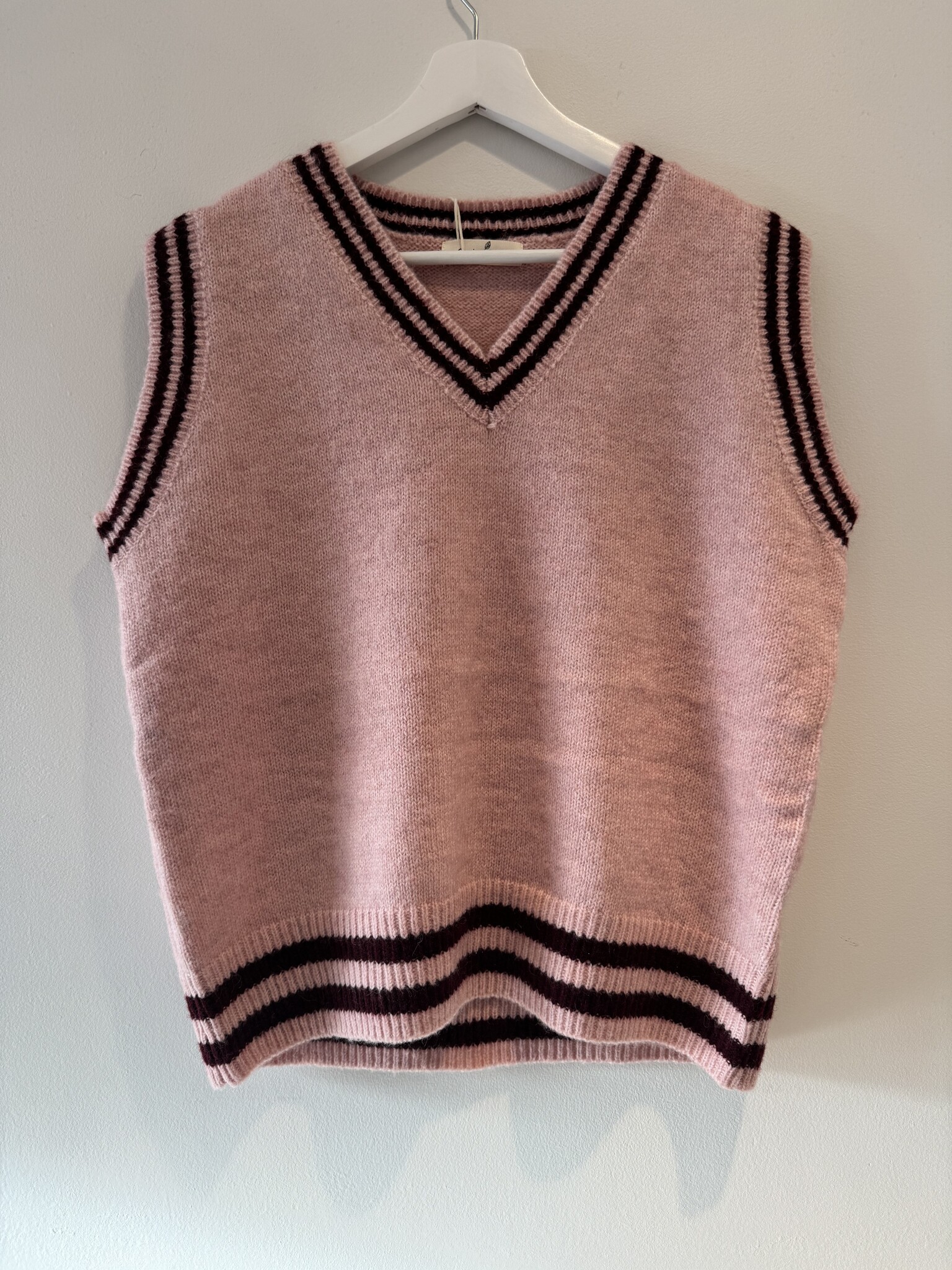 Aan verlanglijst toevoegenVitrin styleMili Pull Rose €39,99 Incl. btw Op voorraad - 1-2 werkdagen Toevoegen aan winkelwagenInloggen voor wishlistDirect betalenBeschrijvingDelenGilet in oudroze met bordeaux randen. Facebook WhatsappToevoegen aan vergelijking